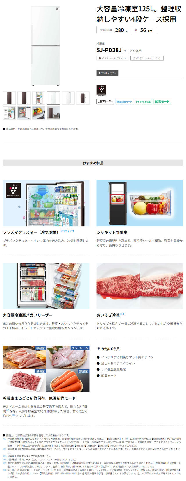 | メーカー・型式 | シャープ / SJ-PD28J-W | |
