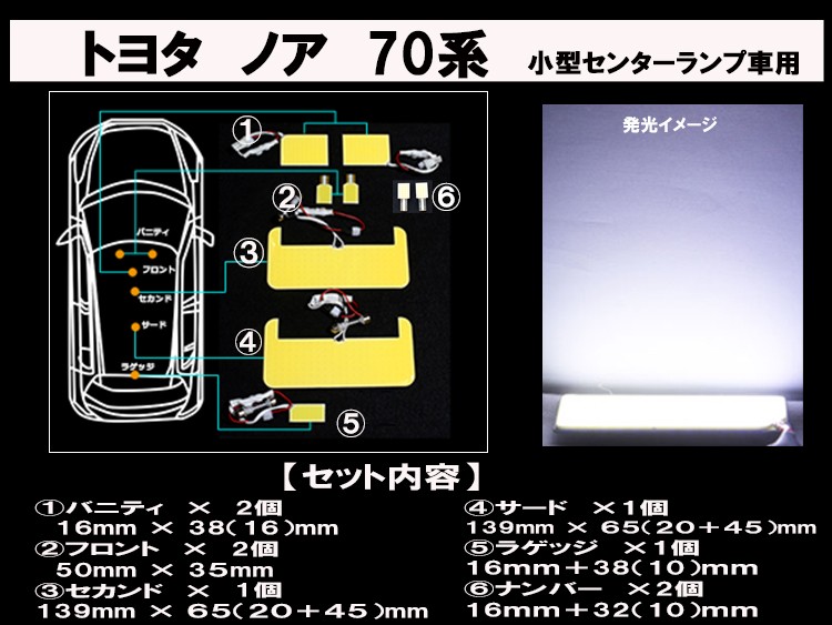 全面発光LED ノア 70系 小型センターランプ車用 ルーム球セット 9点 收藏