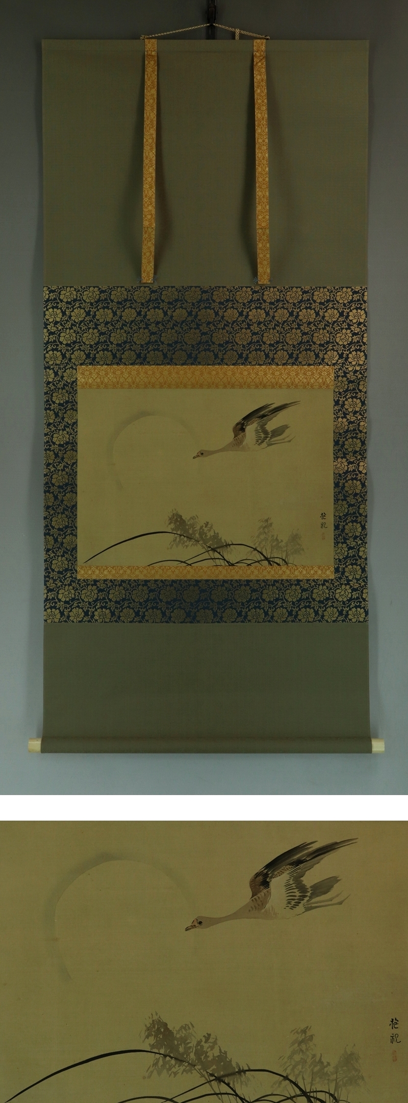 | №2212061【真作】酒井抱祝【月に雁】◆絹本◆合箱◆掛軸 | |