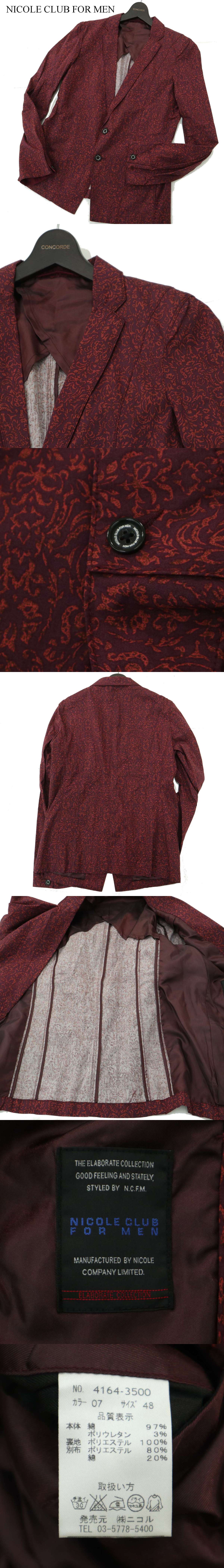 NICOLE CLUB FOR MEN ニコルクラブ フォーメン 通年 背抜き 総柄★ ストレッチ テーラード ジャケット Sz.48 メンズ A4T00507_1#O 收藏