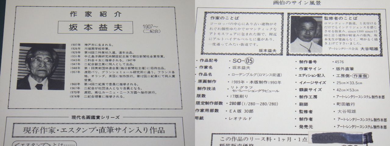 h5B136Z0.1 坂本益夫「ローテンブルグ(ロマンス街道)」110/280 リトグラフ セパレーショングラビュール エスタンプ 直筆サイン 收藏