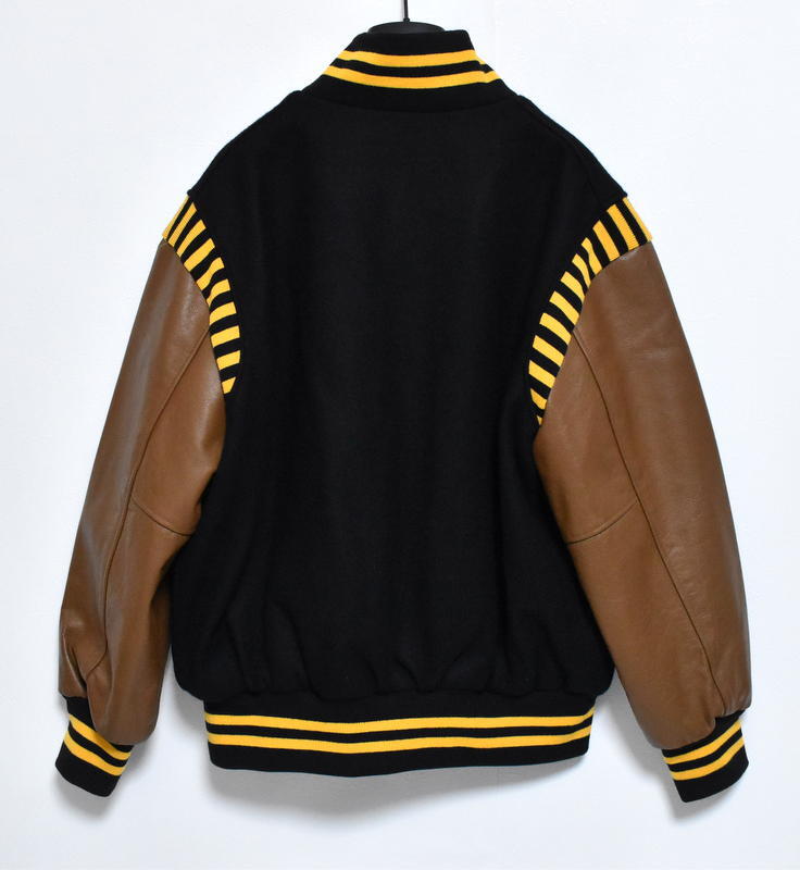 新品未使用。㈱ベイクルーズ取り扱いの国内正規品です。 肉厚でどっしりとした国産のウールメルトン生地の身頃にレザーのスリーブを合わせたスタジャン。 リブ部分に配色ラインを施したオリジナリティのあるデザインに仕上げました。 レザー部分にはアンティーク加工を施してヴィンテージ感を出した本革のバッファローレザーを使用しています。 昨年よりハーフピッチ程度サイズを上げ、袖ぐりにも配色ラインを追加するなど、デザインもサイズ感もアップデート。 ややゆったりとしたオーバーサイズシルエットですが、短め丈なのでバランスよくご着用いただけます。 バッジも付属しており、お好みに応じてカスタムしていただけるのも魅力の一つです。 【色】・・・グレー。フラッシュの関係で実物と画像では多少の色の濃薄が見られます。ご了承の上ご入札お願い致します。 【素材】・・・毛90%、ナイロン10%、皮革部分:牛革、裏地:ポリエステル100%、リブ:アクリル78%、ポリエステル13%、毛8%、ポリウレタン1%。 【サイズ】M・・・肩幅約54cm、身幅約65cm、着丈約65cm、袖丈(肩の付け根から計測)約57cm。 【状態】・・・新品未使用。保管時の軽度のしわが見られます。 ※ご了承の上、入札お願いいたします。 他にも多数出品致しておりますので、宜しければご覧になって下さい。安値での出品ですのでこの機会に是非どうぞ! |