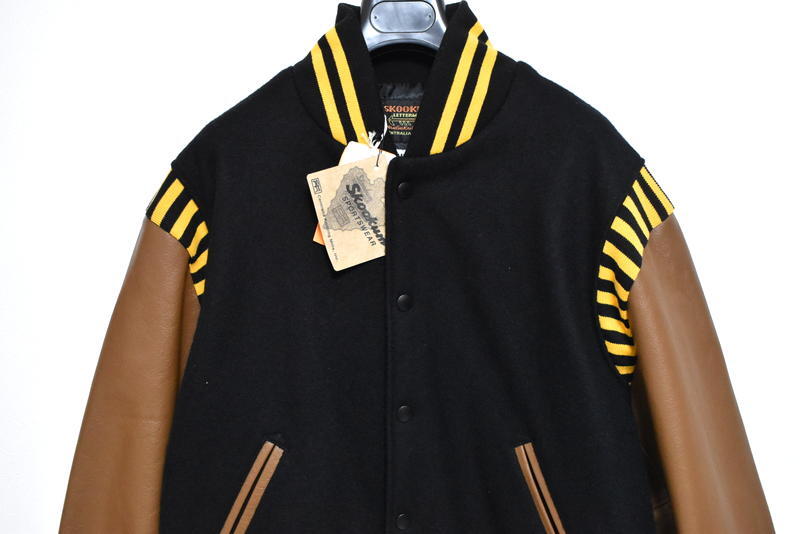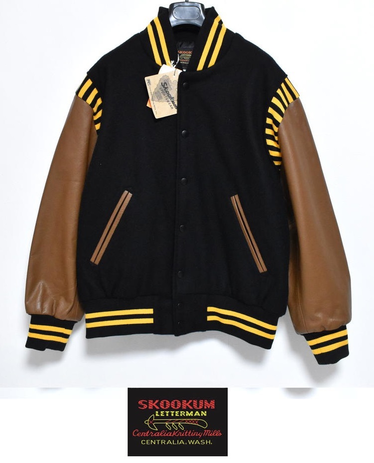 【送料無料】新品 SKOOKUM スクーカム 別注 袖革 メルトンスタジャン M 定価3万7400円 ブラック 收藏