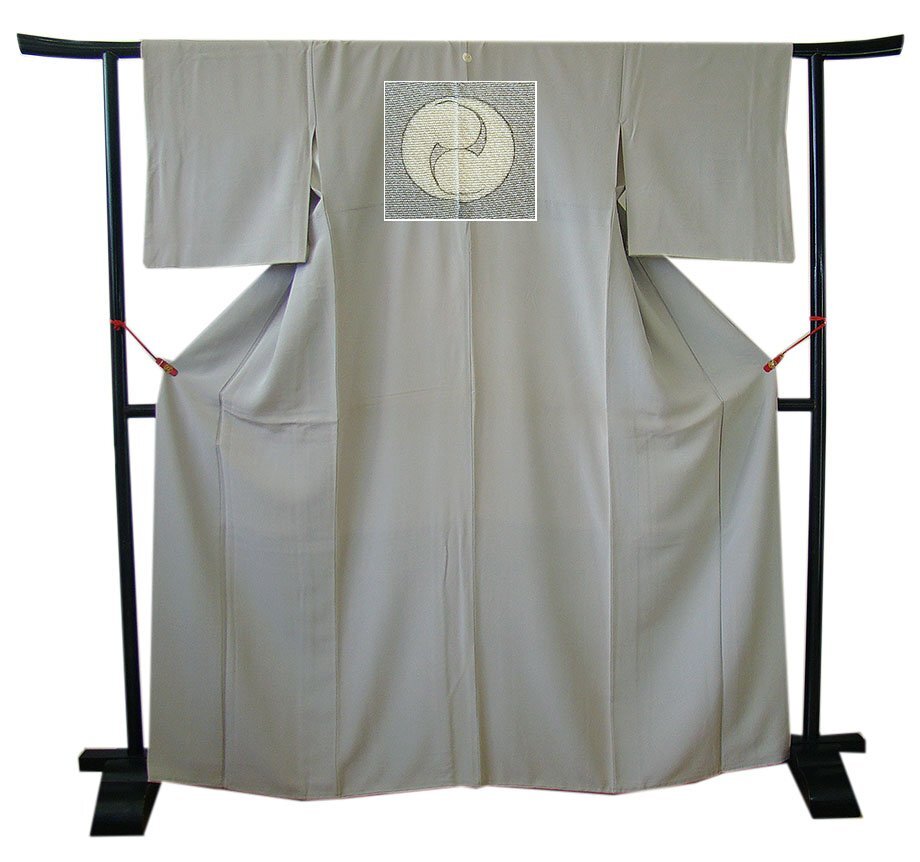 時代屋 裄67.5cm お茶事 極上縮緬地 色無地 正絹 仕立上り 袷 共八掛 重ね衿付 丸に左巴 154cm~160cm M927 收藏