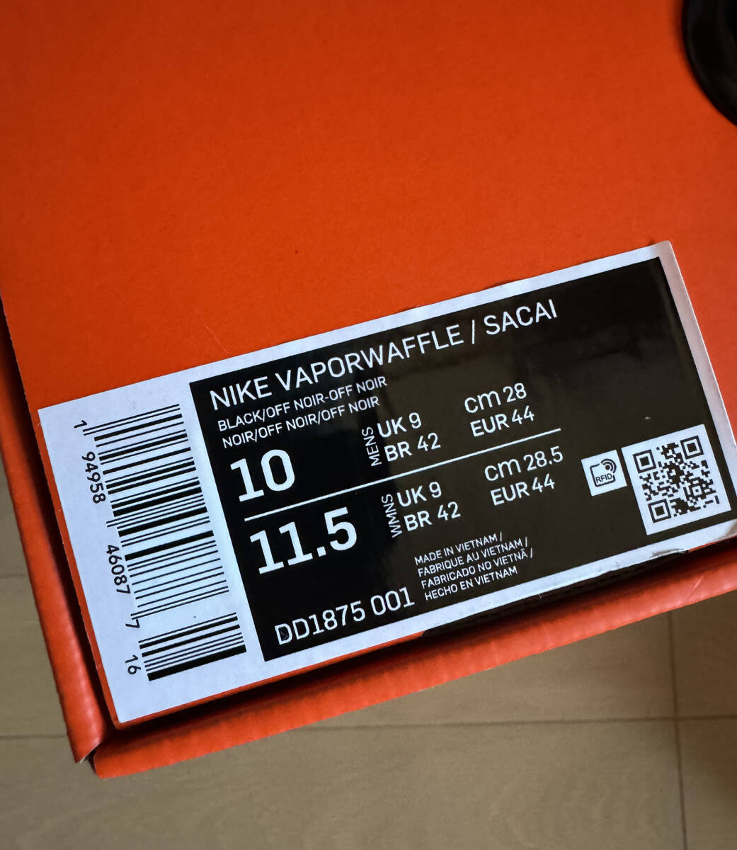 新品未使用 SACAI NIKE VAPOR WAFFLE BLACK GUM US10 サカイ ナイキ ヴェイパー ワッフル ブラック ガム 28 黒タグ付き 国内正規品 收藏