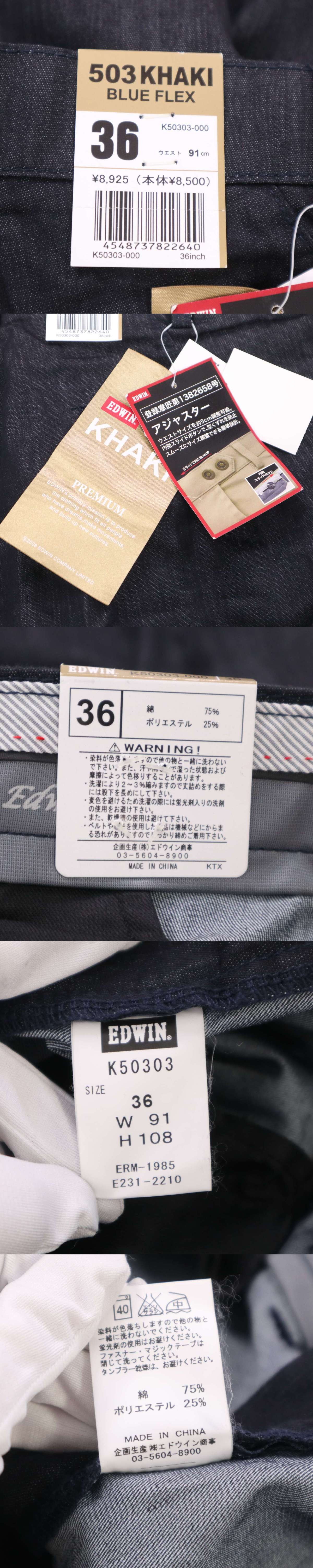 【新品 未使用】 EDWIN 503 エドウィン K50303 通年 ストレッチ★ ノータック パンツ スラックス Sz.36 メンズ 大きいサイズ I5B00140_1#R 收藏