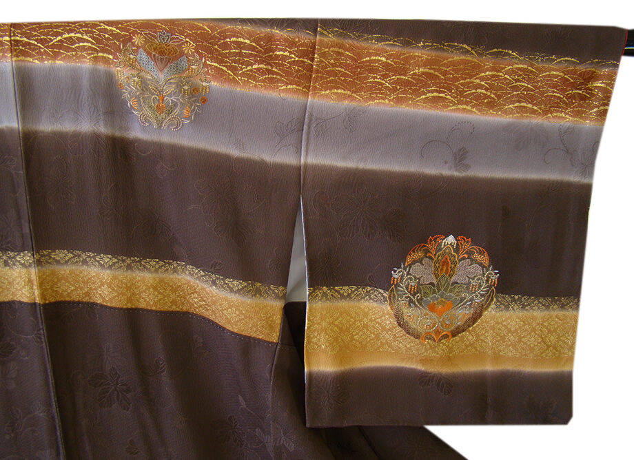 | ちょっと一言 | 重厚感ある紋意匠地に豪華な金彩染が華やかな着物姿を謳う洒落感溢れる素敵な付下げです。 帯や小物次第で様々な表情をお愉しみ頂ける逸品です。 |