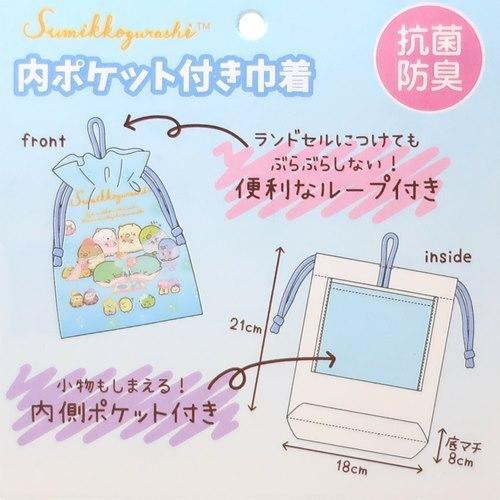 すみっコぐらし 内ポケット付き 巾着 2枚セット 抗菌・防臭仕様 マチ付き ループ付き 巾着袋 小物入れ すみっこぐらし 收藏