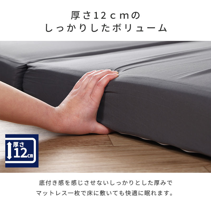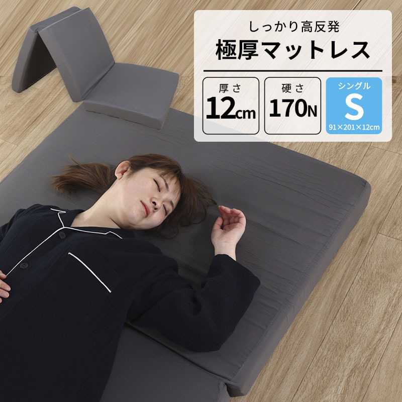 極厚高反発マットレス シングル 91×201×12cm 高反発ウレタンフォーム 三つ折りタイプ 170N 新生活 敷布団 厚さ12cm 硬め 腰痛 收藏