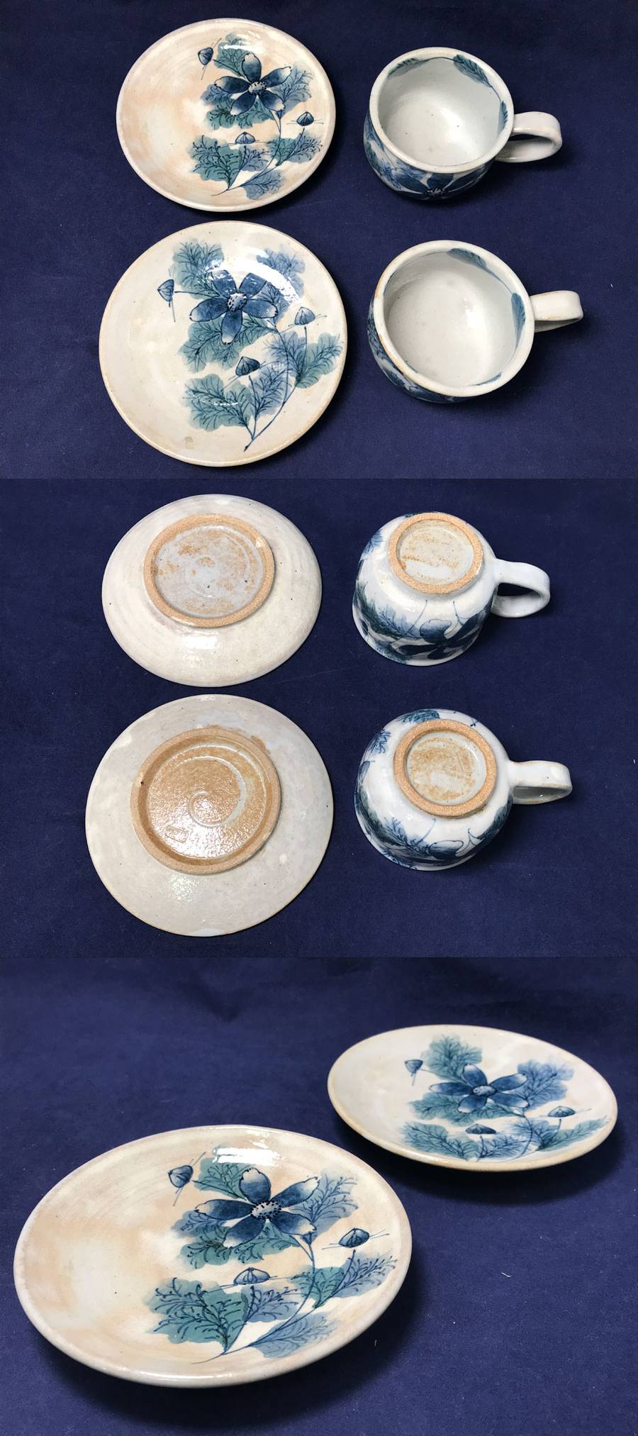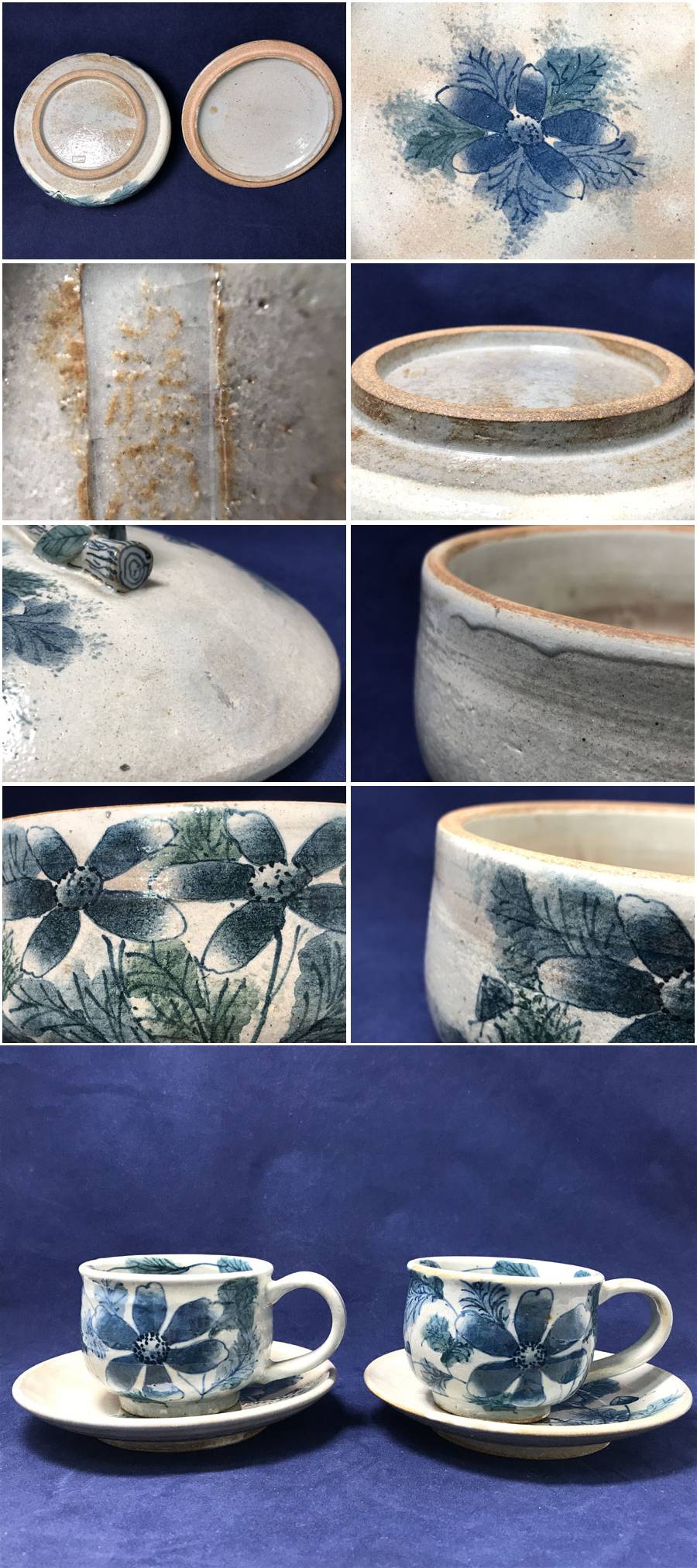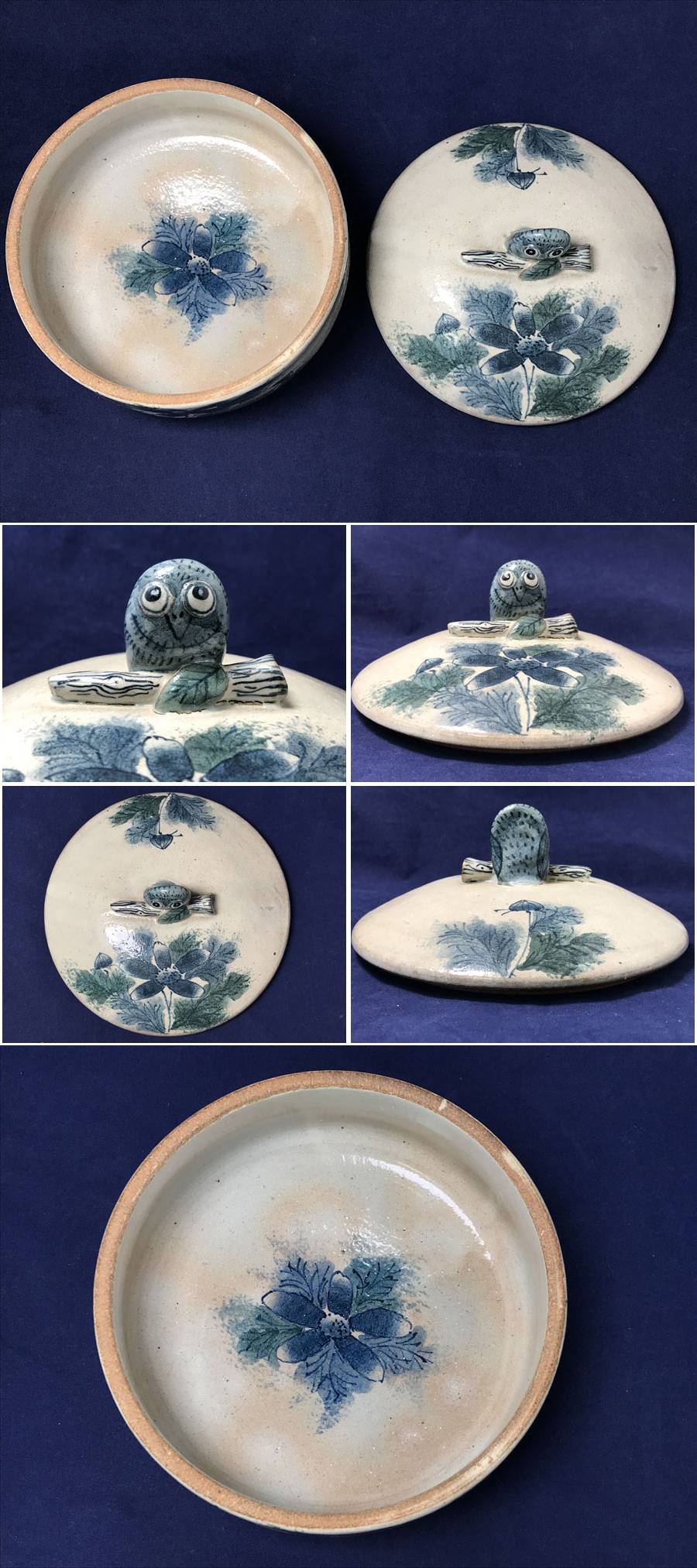 ◆未使用!おまとめ3種 京都 瀬戸焼 お福窯 鈴木義美 ティーカップソーサー 蓋物 蓋付容器 梟 フクロウ 花 陶器 焼き物 收藏