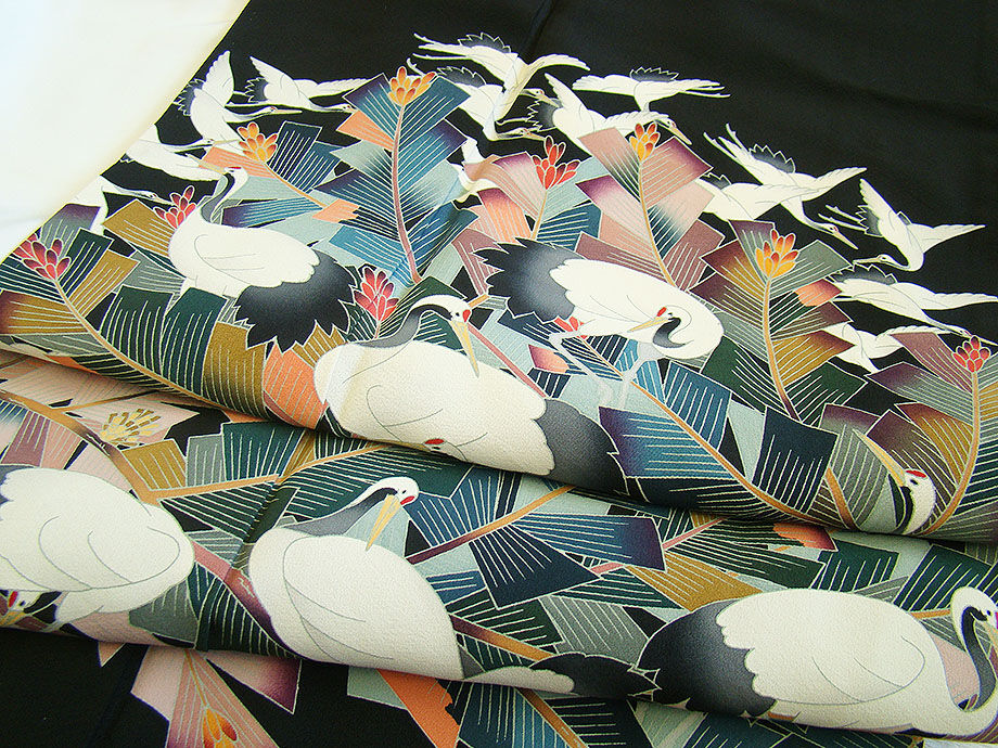 時代屋 裄64.4cm 作家物 結婚式 極上縮緬地 本加工染 黒留袖 正絹 仕立上り 袷 鈴違ひ幣 150cm~156cm D615 收藏
