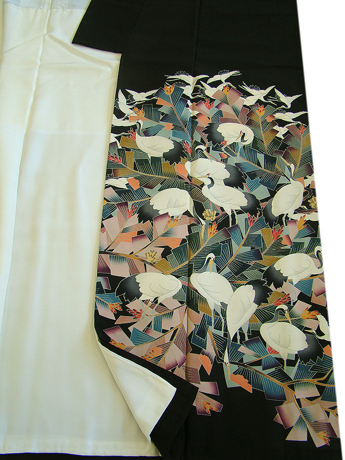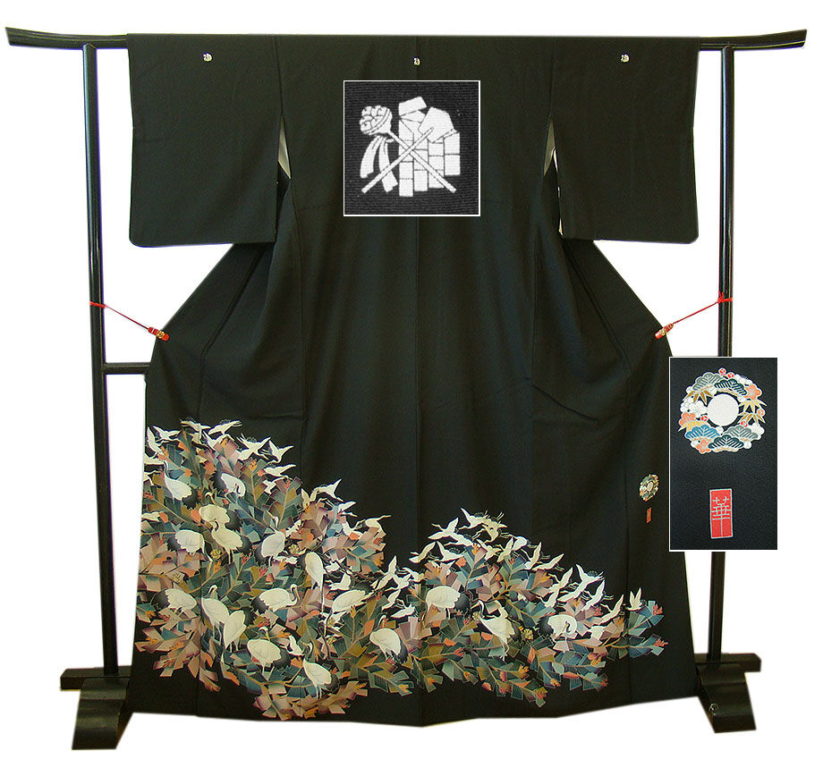 ※本加工染の黒留袖です。 新郎新婦のお母様や、お仲人さんにぴったりでしょう。 日本情緒の趣が匂いたち繊細に染成した脈々と受け継がれた見る人を魅了する品物です。 40代~70代迄幅広く着用出来ます。身長150cm~156cmの貴女に最適です。 |