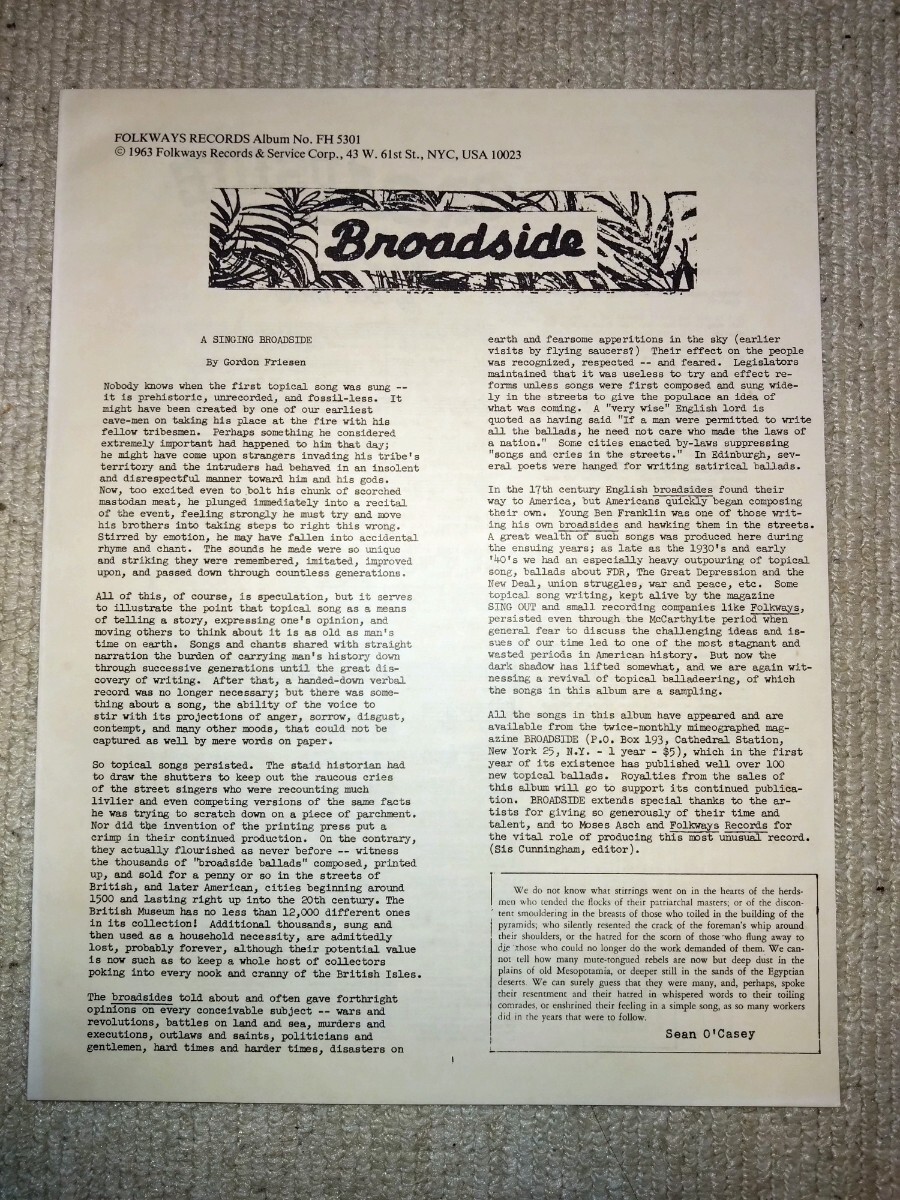 BOB DYLAN,HAPPY TRAUM!★BROADSIDE BALLADS VOL.1 FOLKWAYS FH-5301 收藏