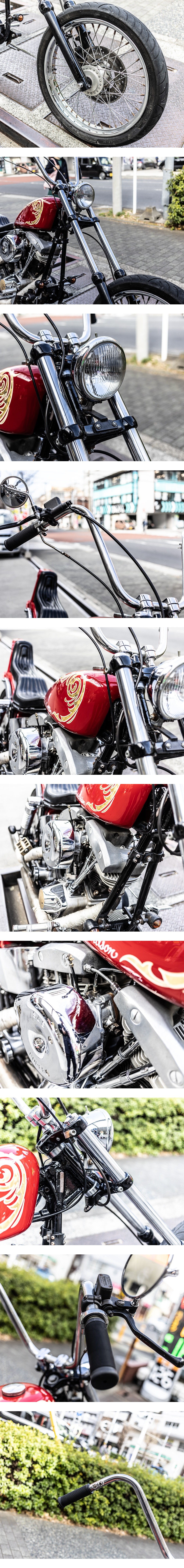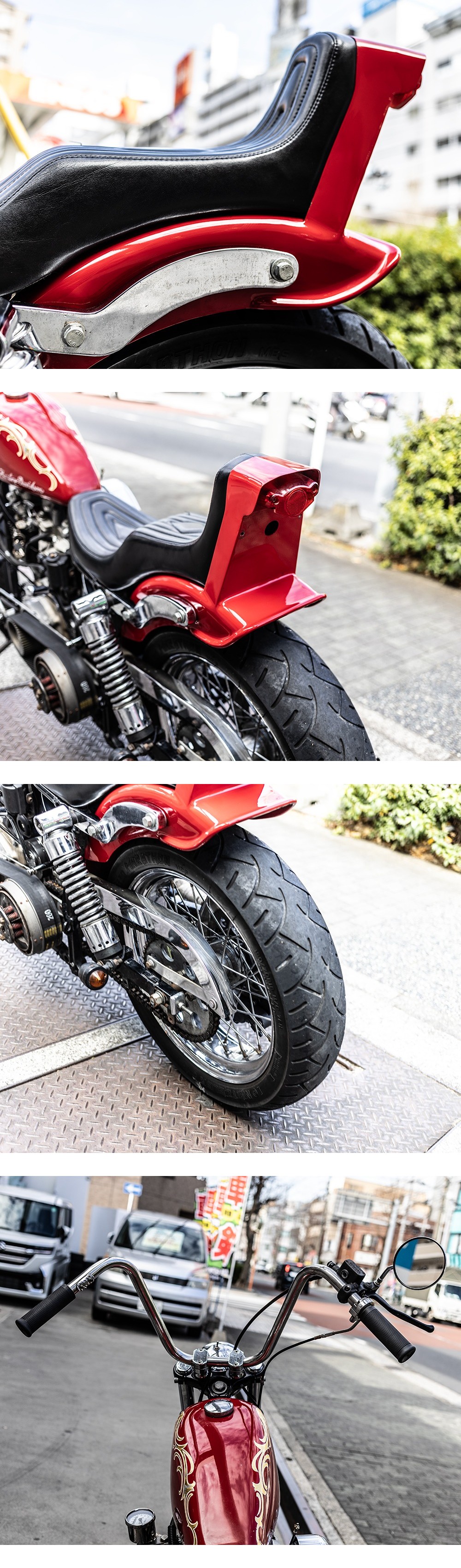 39パイロングフォークにカタチが美しい70'sなハンドル、リアは4速フレームに一番似合うクレイジーフランクシートで伝説的なデンバースチョッパースタイルを感じさせるクールなチョッパーになっております。気になるオイル漏れや白煙、エンジン音も良好でランニングコンディション、車検も残っており即納状態になっております。