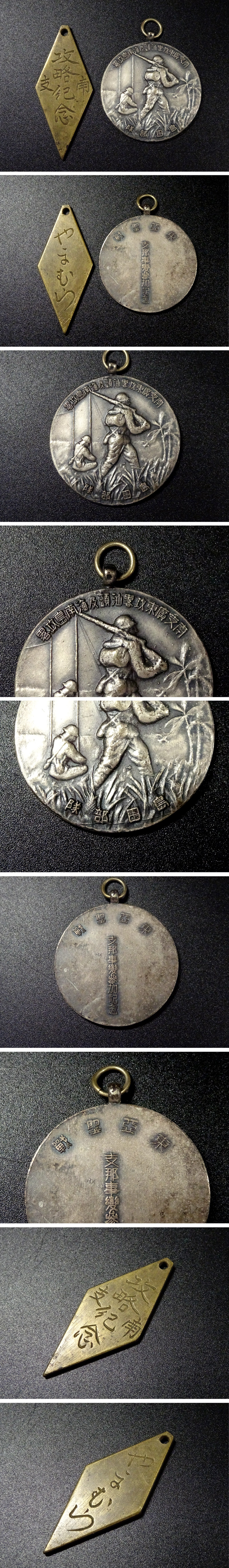 ∇花∇希少 大日本帝国 旧日本軍 東亜聖戦 南支広東攻略汕頭及海南島攻略 記念章 南支攻略記念章 2個組 勲章 徽章 陸軍空軍海軍 13 收藏
