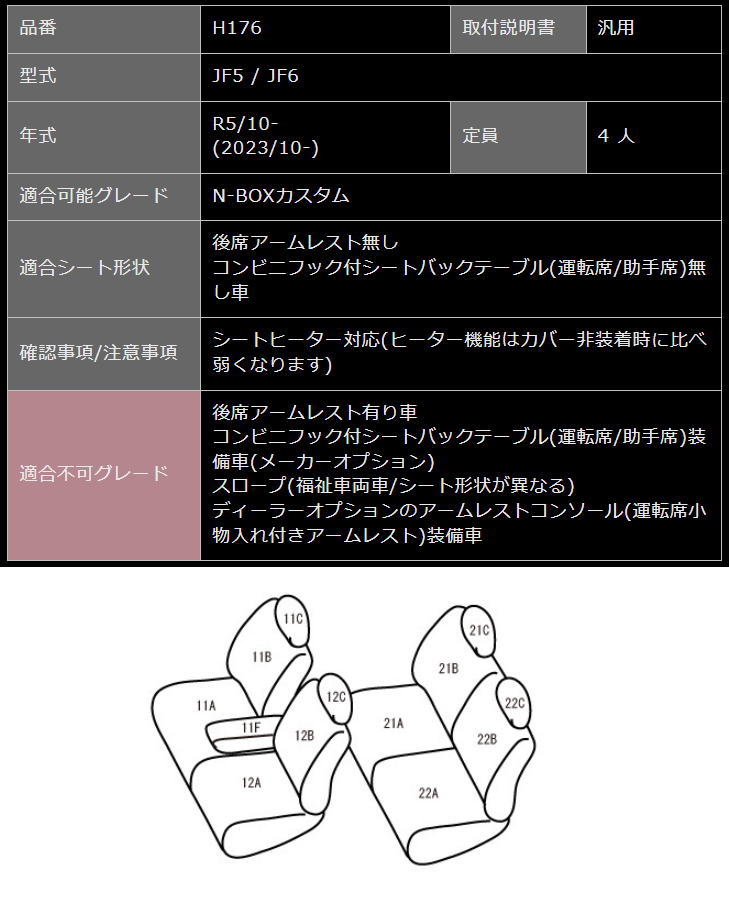 H176【N-BOXカスタム JF5/JF6】R5/10- ベレッツァワイルドステッチアルファシートカバー 收藏
