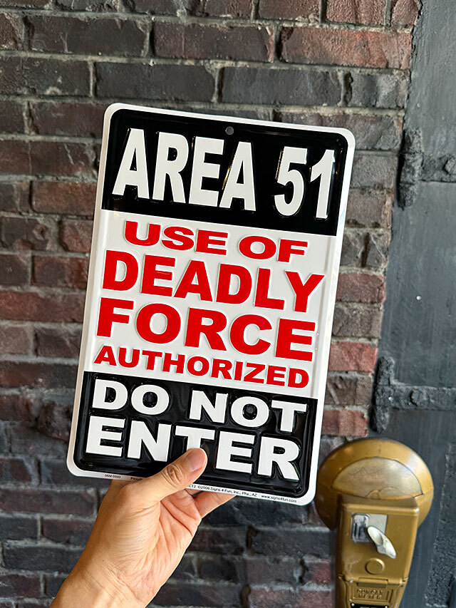 そんなウワサが絶えないアメリカの軍エリア、エリア51をテーマにした看板です。