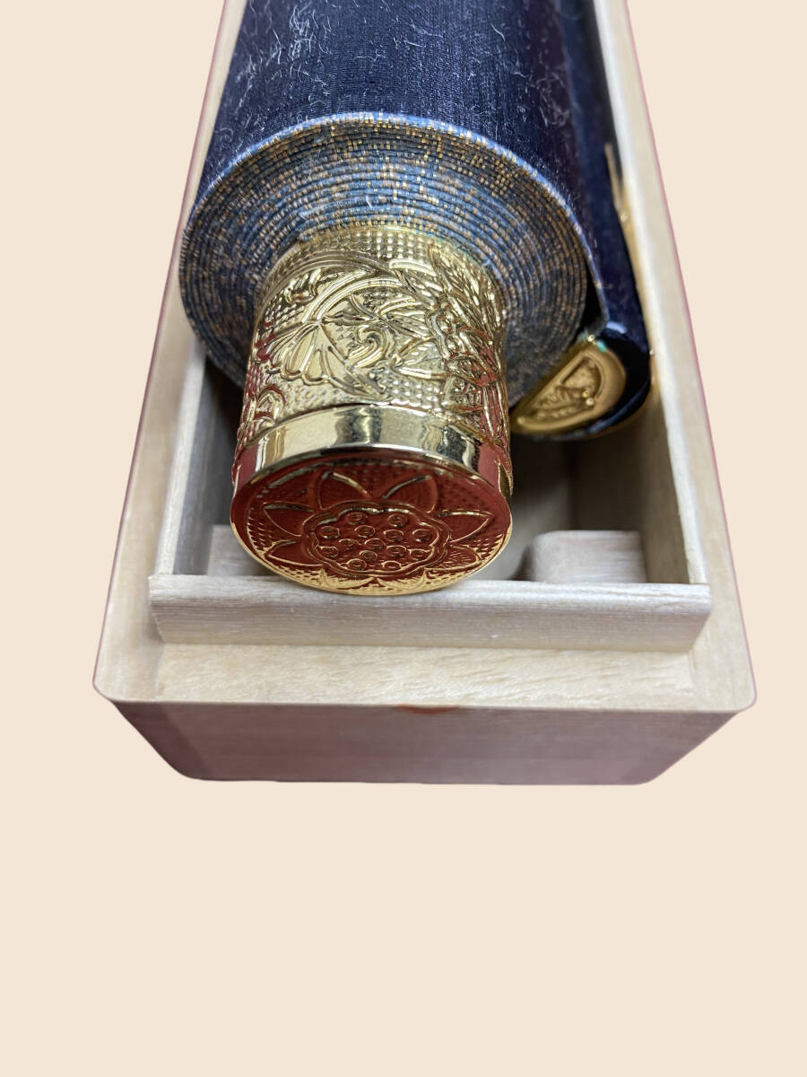 掛軸の軸先ですが、配送中の振動・気温・経年劣化等で外れてしまうことがあります。軸先の外れは、返品の対象にはなりません。大変お手数ですが、お客様ご自身での修復をお願い致します。