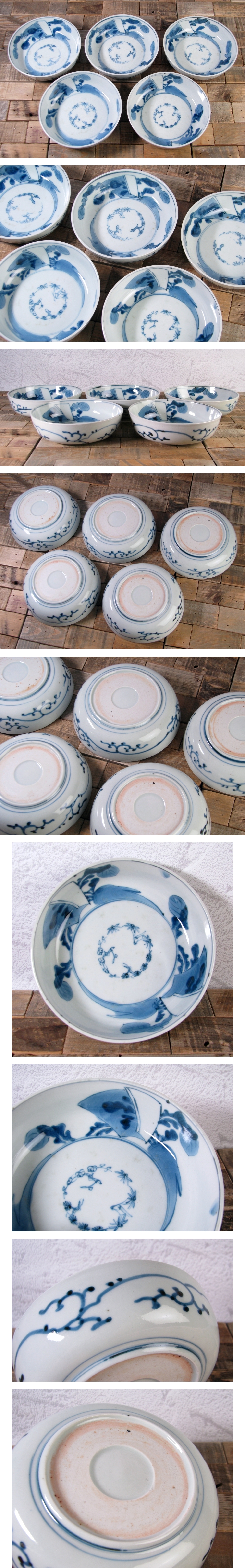 古伊万里 染付 野菜文なます皿5枚 幅:14.5cm 江戸後期/25g007 收藏