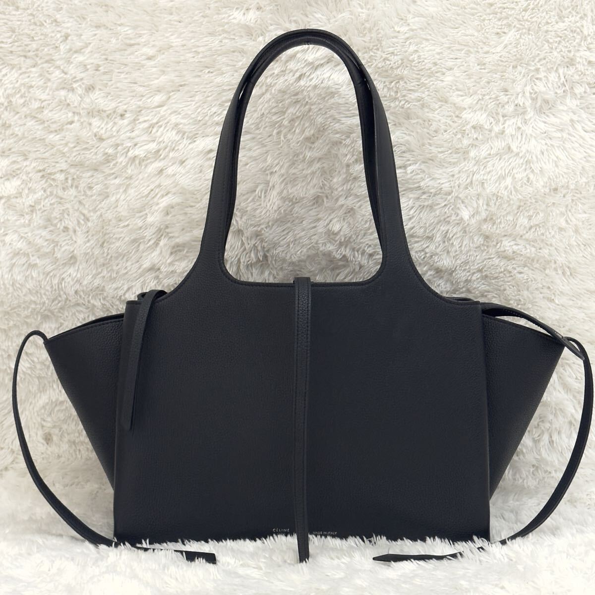 ☆極美品☆CELINE セリーヌ トリフォルド スモール トート ハンドバッグ ブラック 黒 レザー 收藏