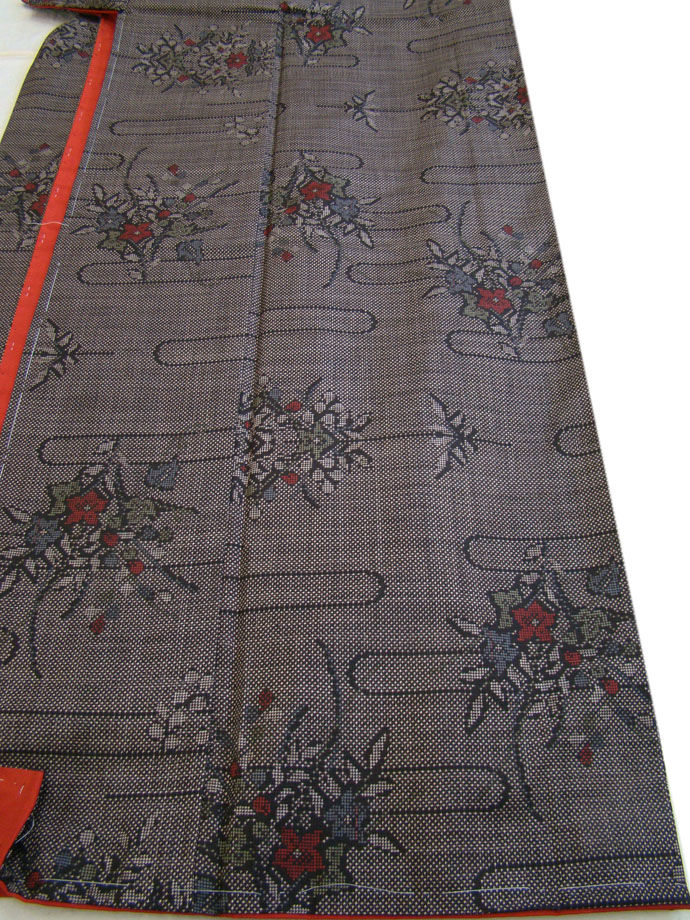 時代屋 美品 裄66.3cm 人気 本場 奄美 大島紬 径横絣・七マルキ・正絹 未使用 152cm~160cm Ts255 收藏