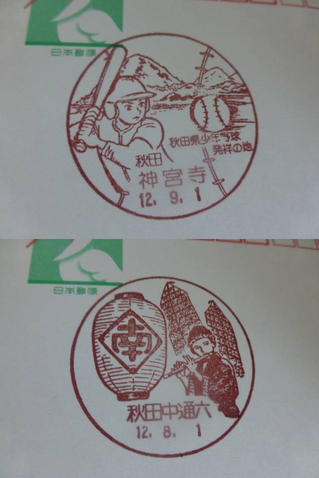 ☆トキはがき 初日風景印 秋田2枚 神宮寺 H12.9.1・秋田中通六 H12.8.1 收藏