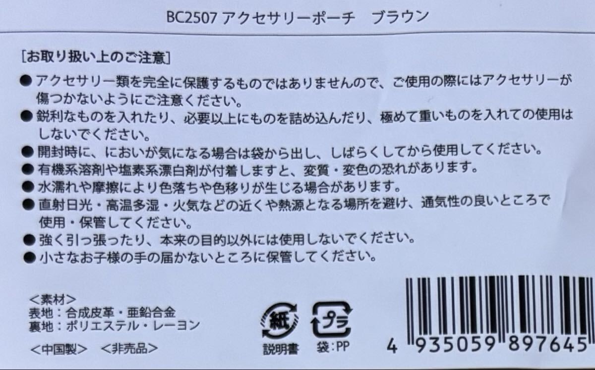 【素材】〈表地〉合成皮革・亜鉛合金〈裏地〉ポリエステル・レーヨン