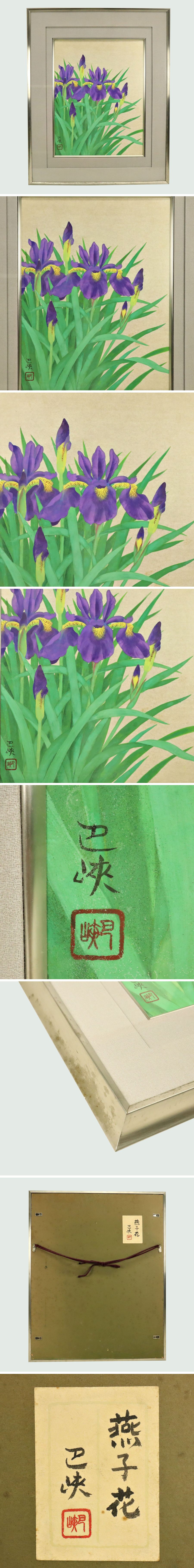 真作保証 三上巴峡 「燕子花」 日本画 約39×30.5cm 備後 絵画 書画 骨董品 美術品 305525nqN 收藏