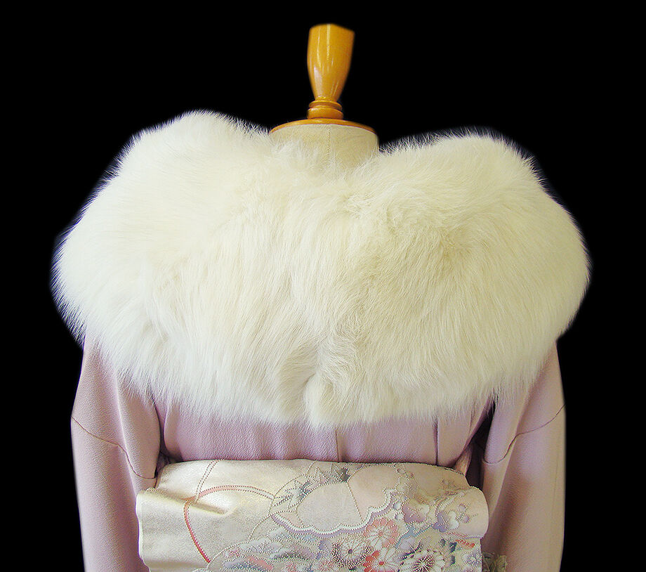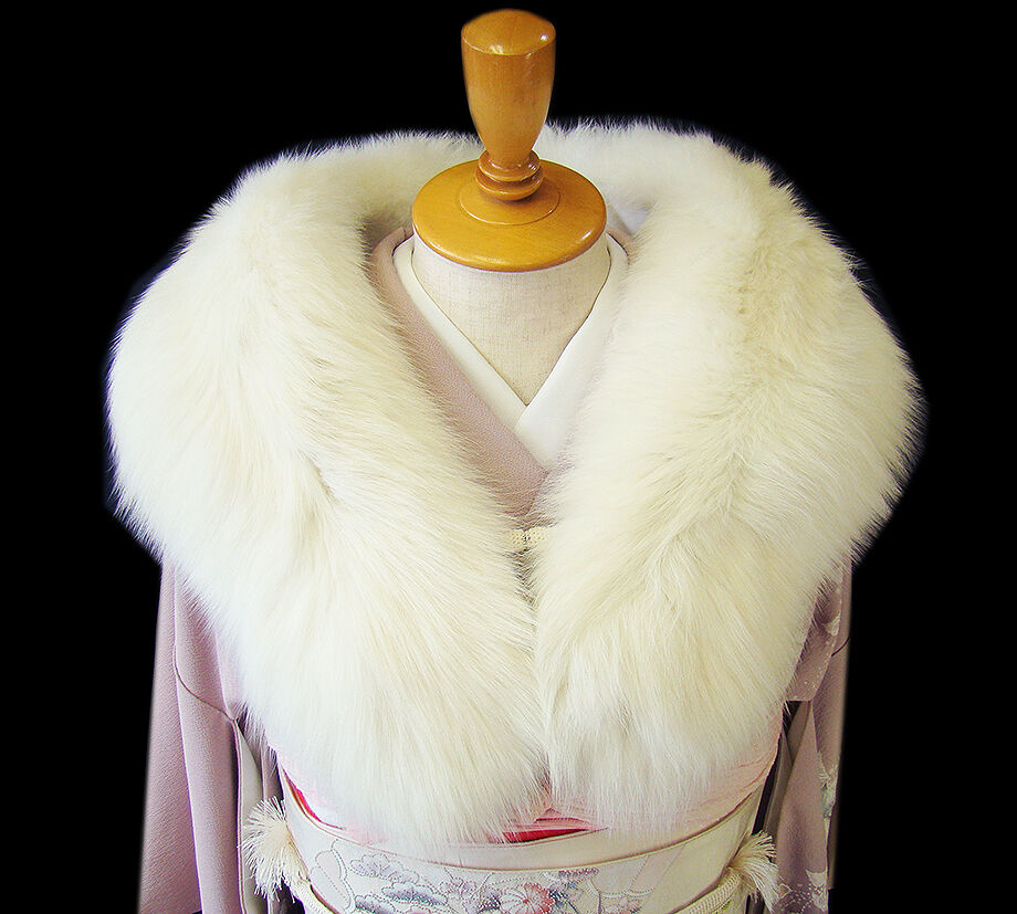 きものしらゆり 成人式 振袖用 大判 SAGA FOX 白地 シャドーフォックス 高級 ショール 天然毛皮 S666 收藏
