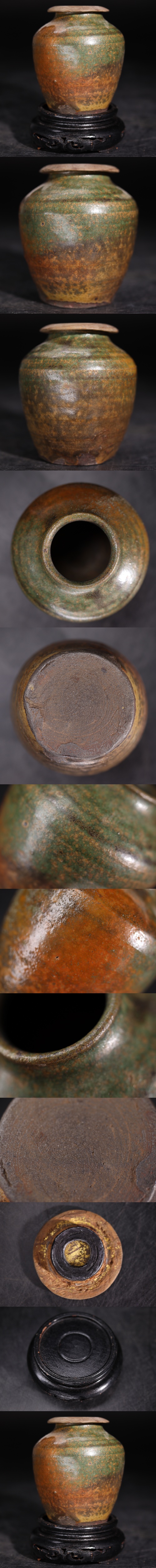 時代 緑釉 茶入 台座付 / 検索: 三彩 唐三彩 中国美術 唐木 茶器 煎茶道具 煎茶飾 .G2643 收藏