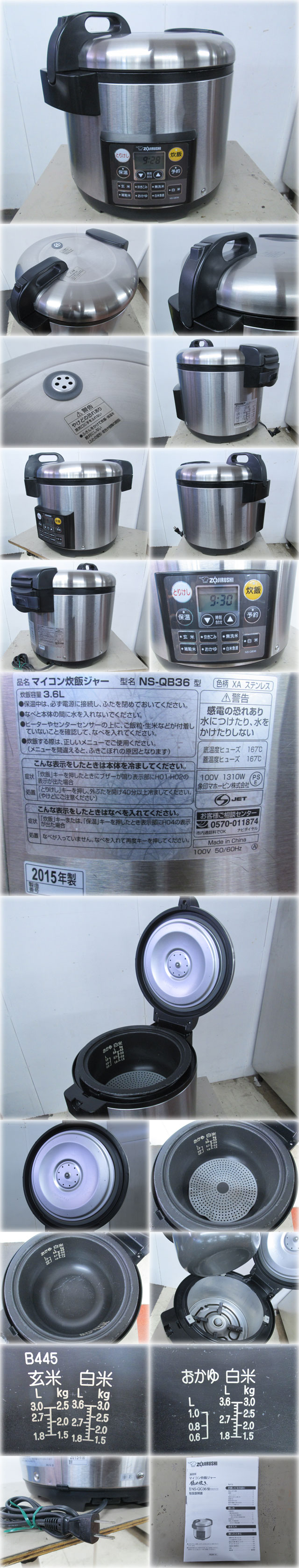 象印マホービン 業務用マイコン炊飯ジャー 極め炊き NS-QB36 を出品いたします。 ■特徴■ おいしく炊飯、おいしく保温「マイコンタイプ」 釜全体に熱が伝わる「まる厚釜」(2.0mm) 水位線が見やすい「親切目盛」 「炊き込み」「おかゆ」「玄米」「雑穀米」 が炊ける専用メニューつき 炊飯・予約・メニューが簡単に操作できる 「ダイレクトボタン」 ■仕様■