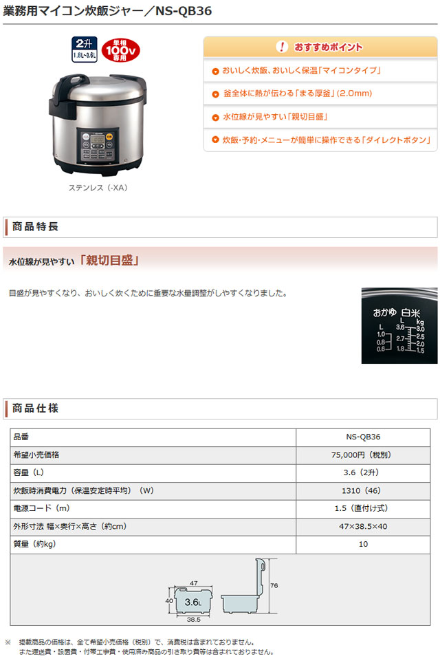 象印マホービン 業務用マイコン炊飯ジャー 極め炊き NS-QB36 3.6L(2升)炊 単相100V まる厚釜/親切目盛/専用メニュー/ダイレクトボタン 收藏