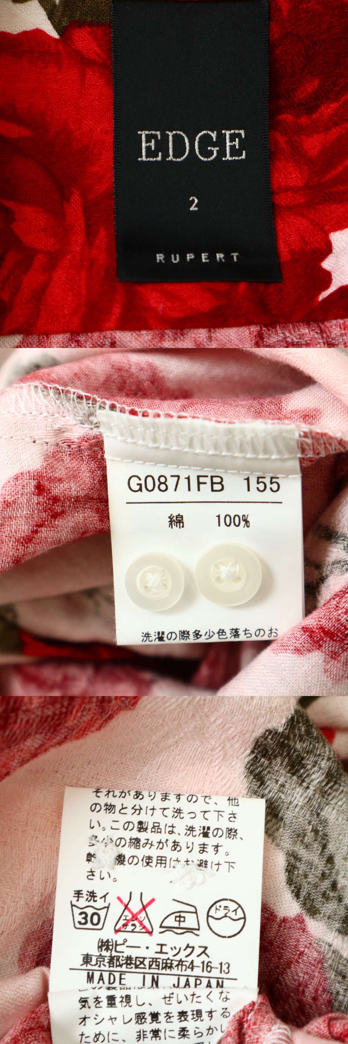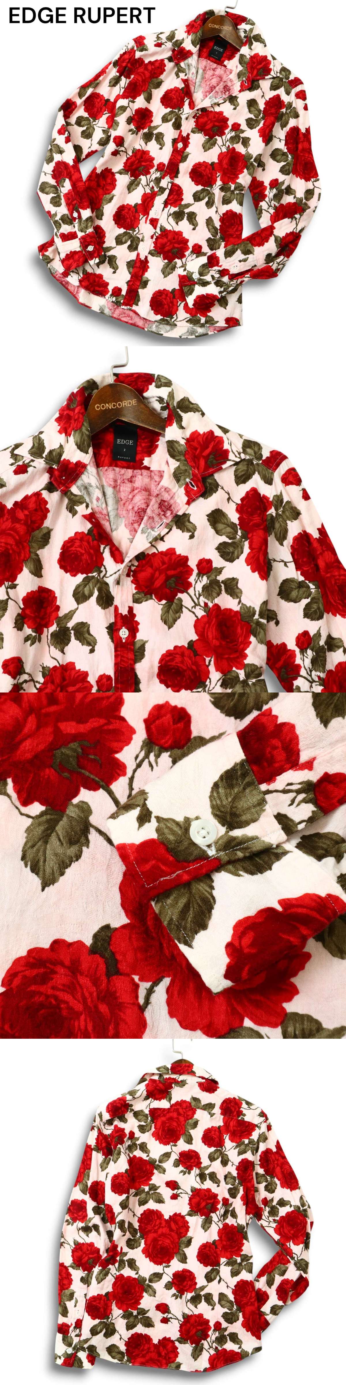 【00s★Y2K VINTAGE】EDGE RUPERT ルパート 通年 薔薇 ローズ総柄★ 長袖 スリム シャツ Sz.2 メンズ 日本製 收藏
