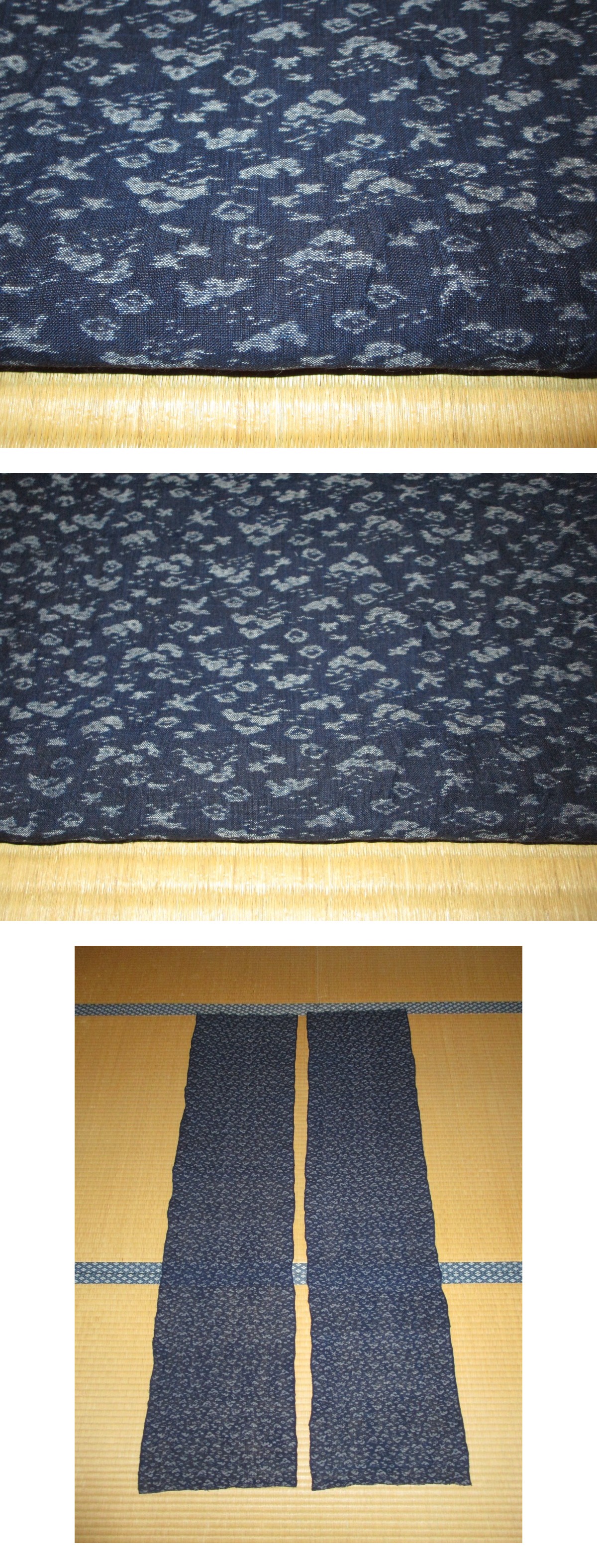 【昔古布】大正期 無傷で 美品の 藍染手織 麻の小絣 2幅 (長合計284) 鶴松梅紋 ●リメイク材料● 收藏