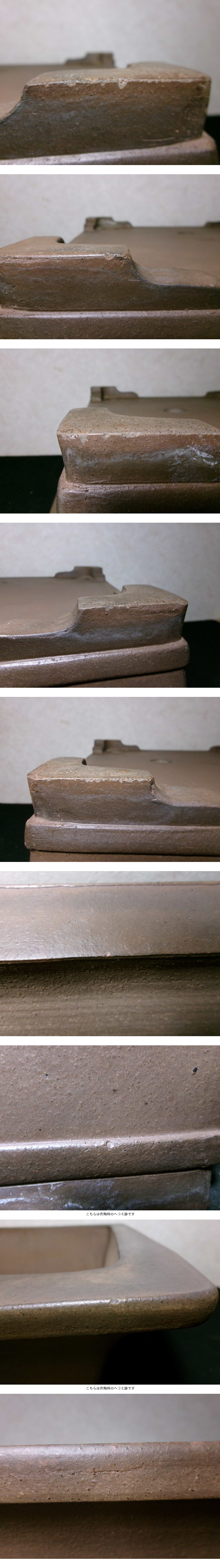 超希少な特大サイズ 時代感上々の古作 見事な土目と丁寧な造形 行山 中野行山 泥段足下帯外縁正方大鉢 幅46センチ 時代品 | |||||||||||