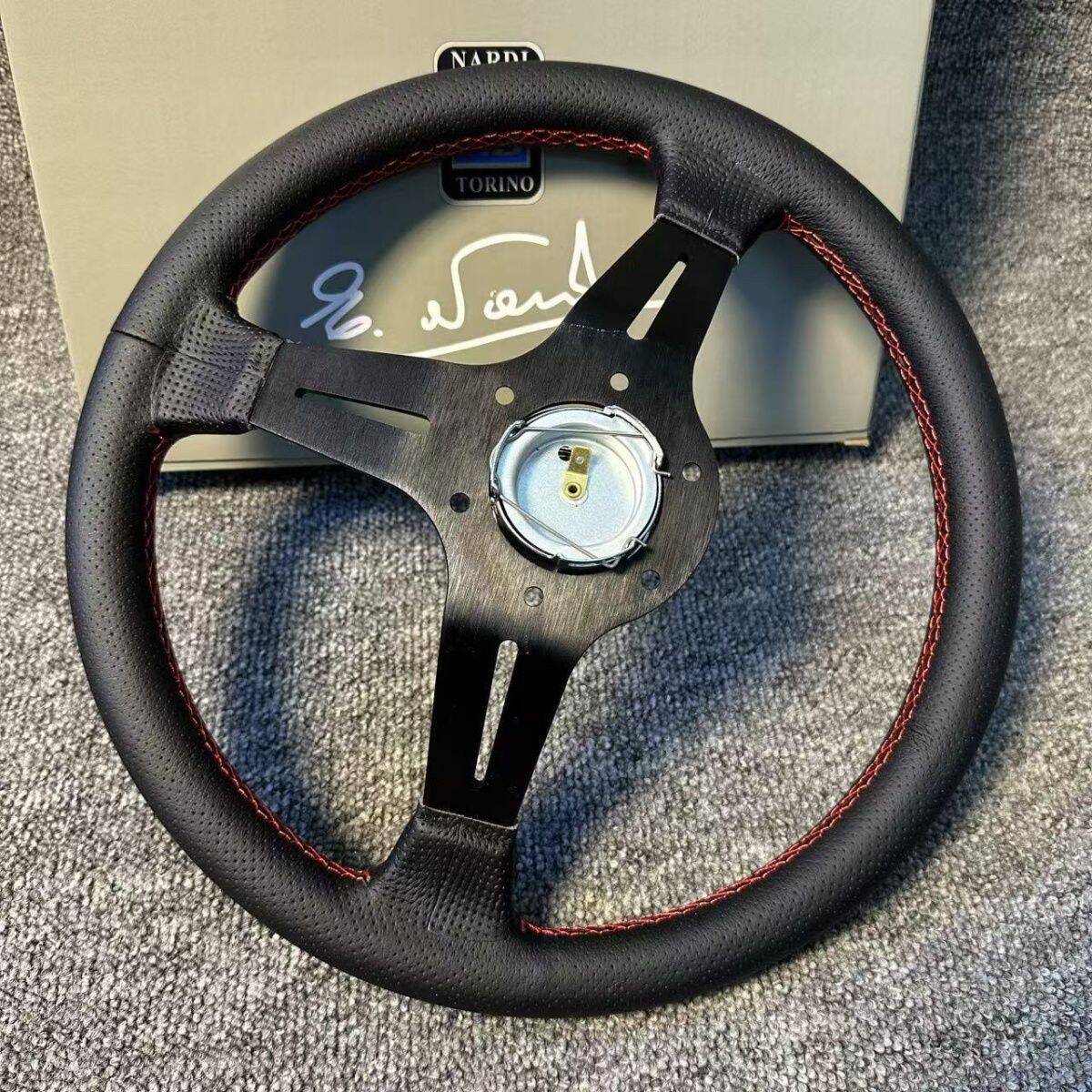 NARDI ステアリング ハンドル レザー 車改装 レース用 14インチ スポーツステアリング ホイール ドリフト レッドライン 黒色9AT0084 收藏