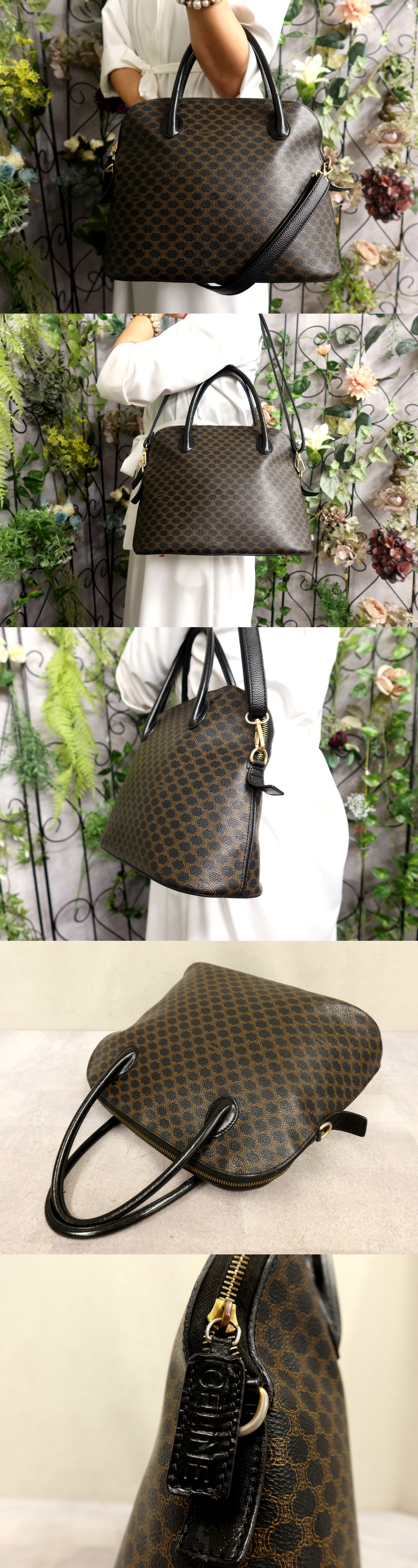 ●超美品●CELINE セリーヌ●マカダム●PVC カーフ レザー 本革●2way ハンド バッグ●黒 ブラウン●ゴールド金具●腕掛け●収納●Js61008 收藏