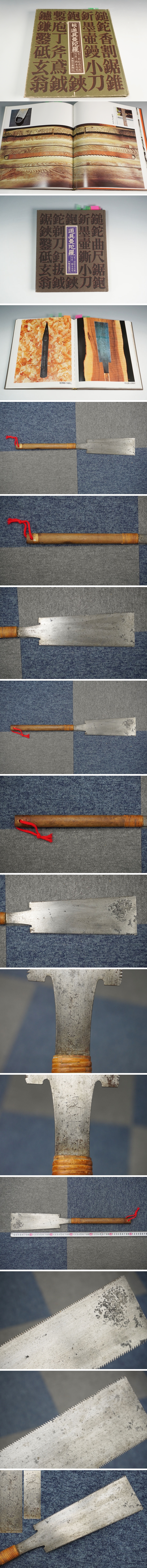 | 番匠の道具 宮大工 在銘 渡辺 虎造? 両刃鋸 鋸 のこぎり ノコギリ 全長 60cm 大工道具 保証品 ◆2508IKD16 | ||||