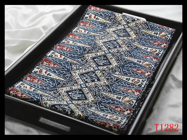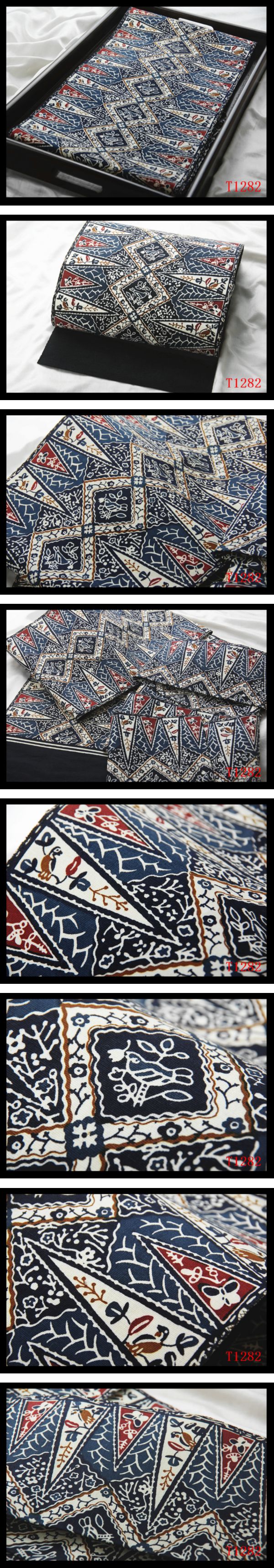蔵【T1282】厳選逸品 型染め 花蝶紋 象牙色青藍色 気品豊かに 綿 高級美術名古屋帯 ◇検簪着物袋帯和装小物帯締め 收藏