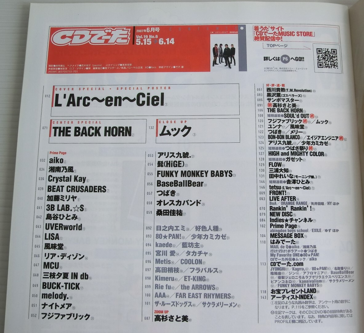 CDでーた 2007年5/15~6/14◆角川マガジンズ◆LArc~en~Ciel ラルク(超特大ポスター付) ムック 收藏