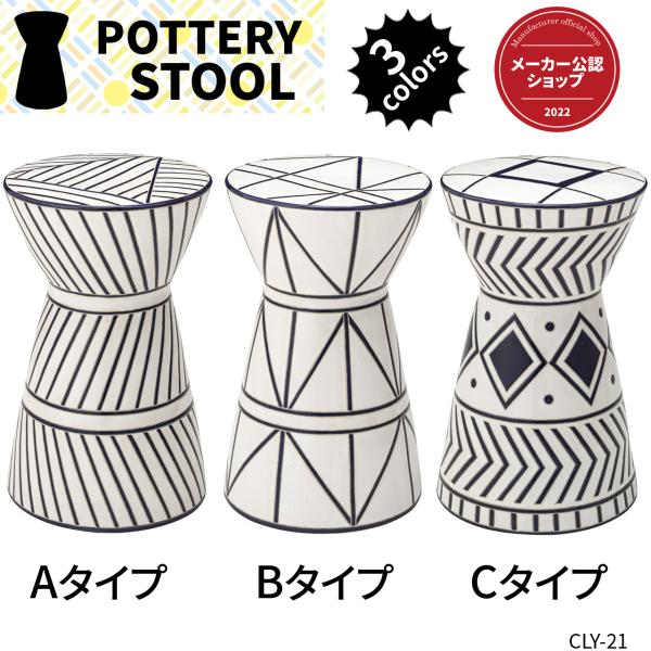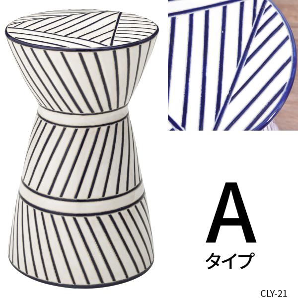 トライバル柄 スツール 陶器 直径30cm 高さ45m 円形 CLY-21-A AZ |