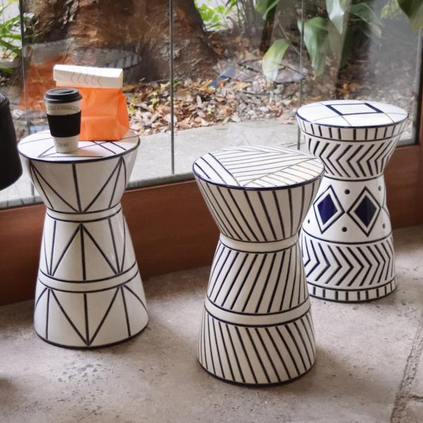 トライバル柄 スツール A 陶器 直径30cm 高さ45m 円形 CLY-21-A AZ 收藏