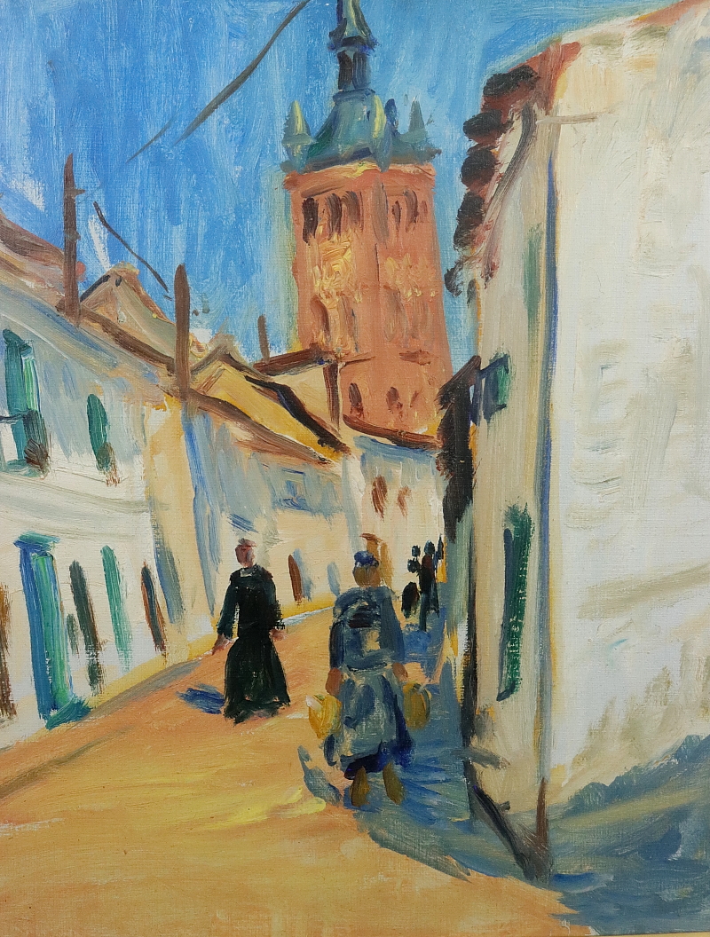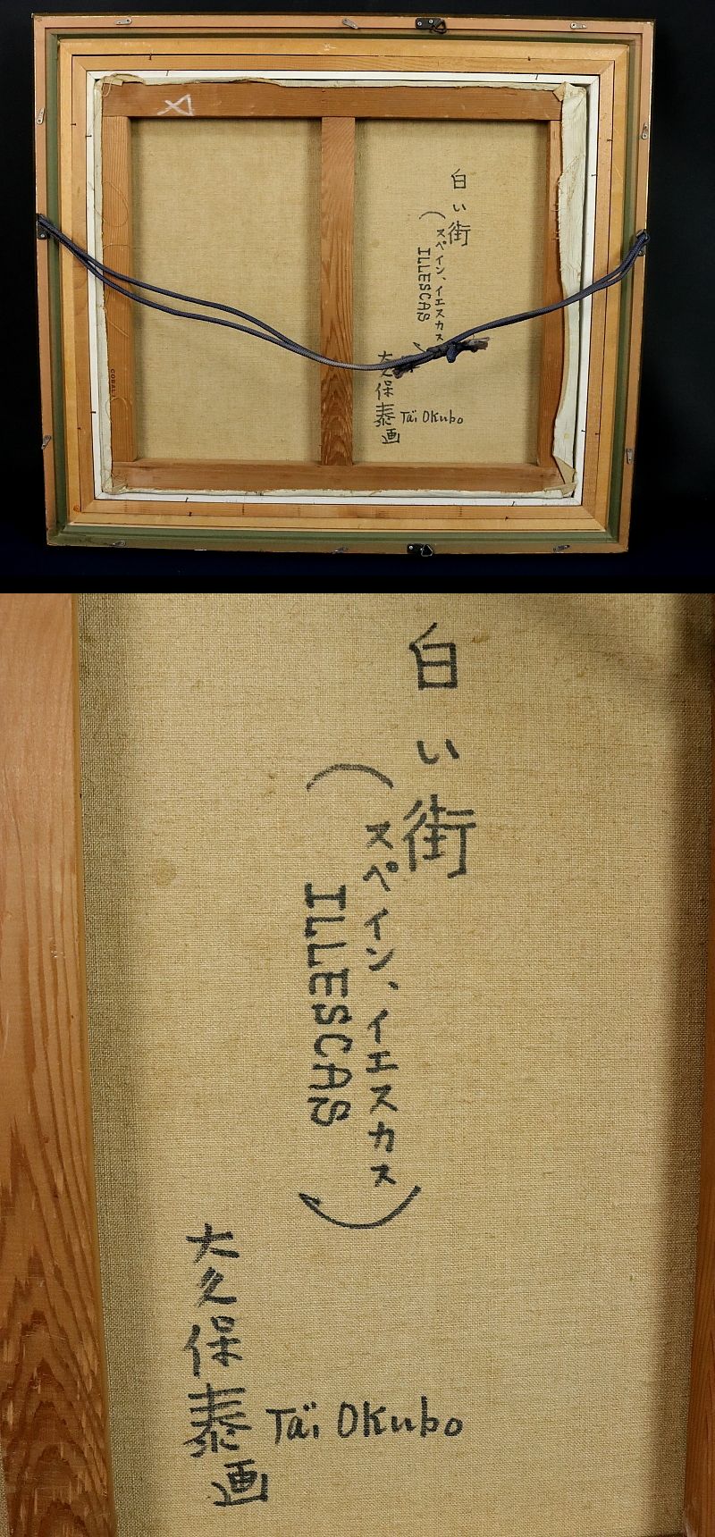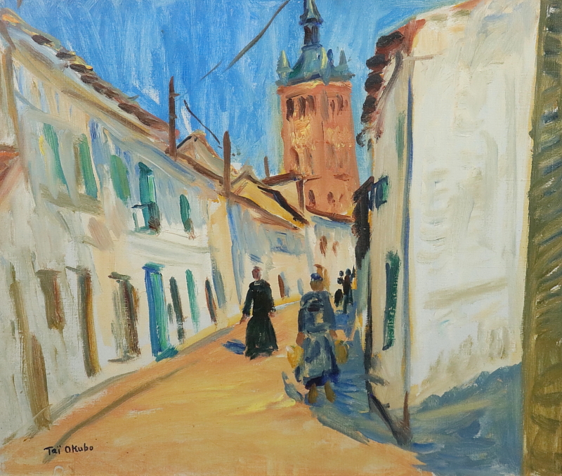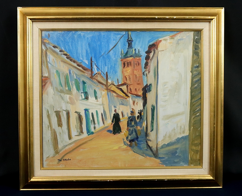 11180■【真作】大久保泰 「白い街」 スペイン・イエスカス 油彩 肉筆 10号 裏書サイン有 洋画家 美術評論家 愛知県の人 額装 收藏