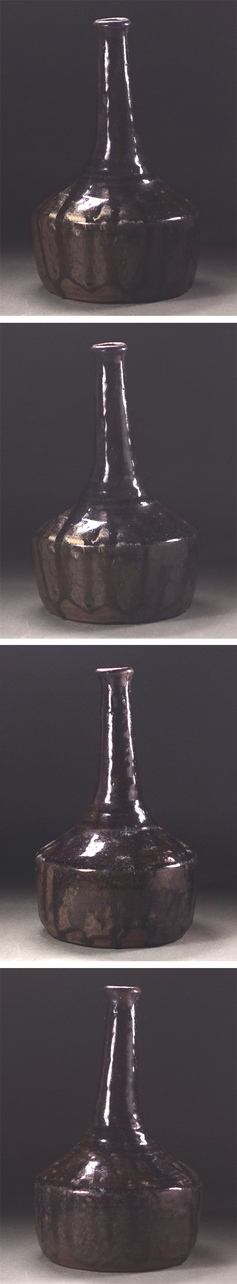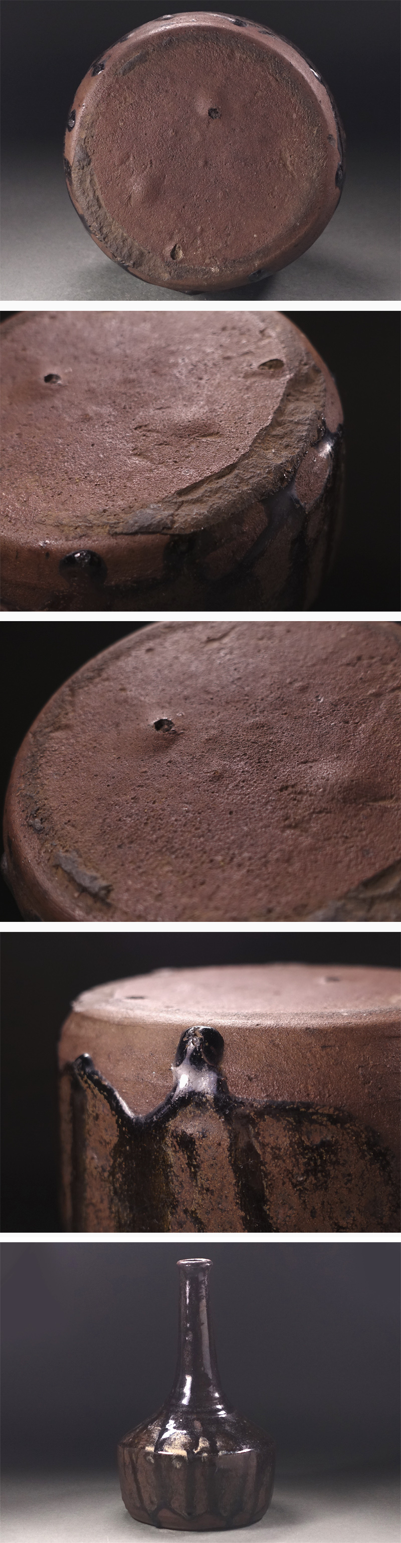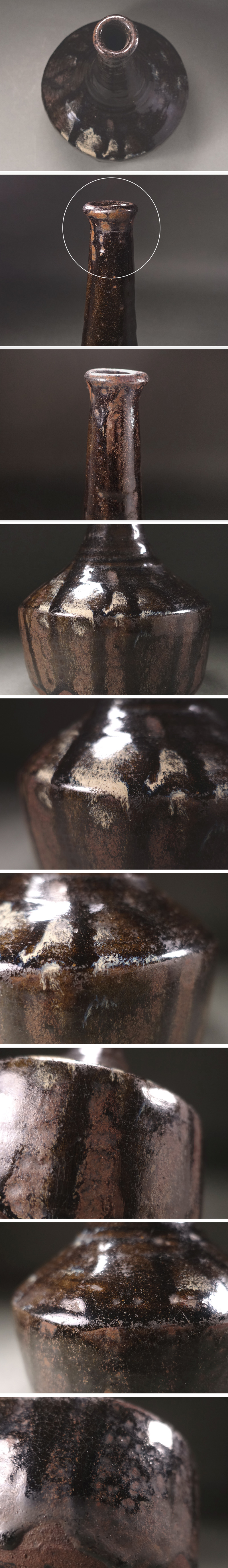 ∇花∇江戸時代前~中期 古唐津 朝鮮唐津藁灰釉花生 徳利 釉景富む優品 收藏