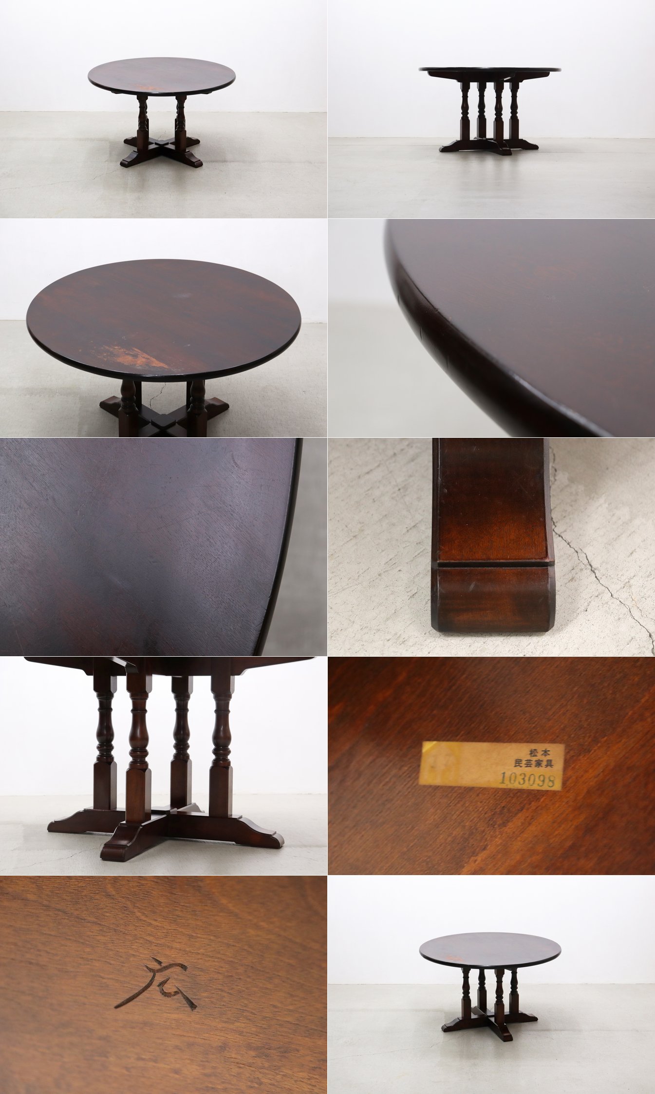 ◆松本民芸家具 F型 ラウント ダイニングテーブル 円型 円卓 ミズメザクラ無垢材 レトロ/アンティーク和モダン北海道古民家/PJK11056◆ 收藏