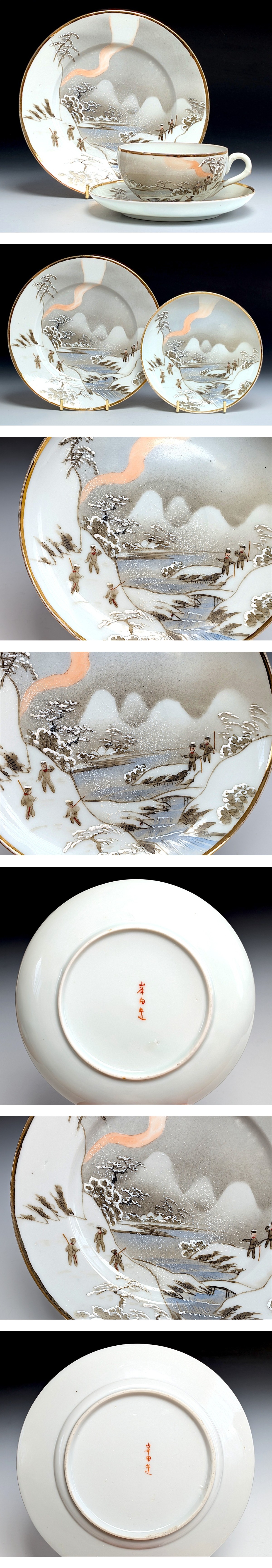 オールドニッポン 岸田造 金彩 白釉点 日露戦争図紋 キャビネットトリオ | ||||