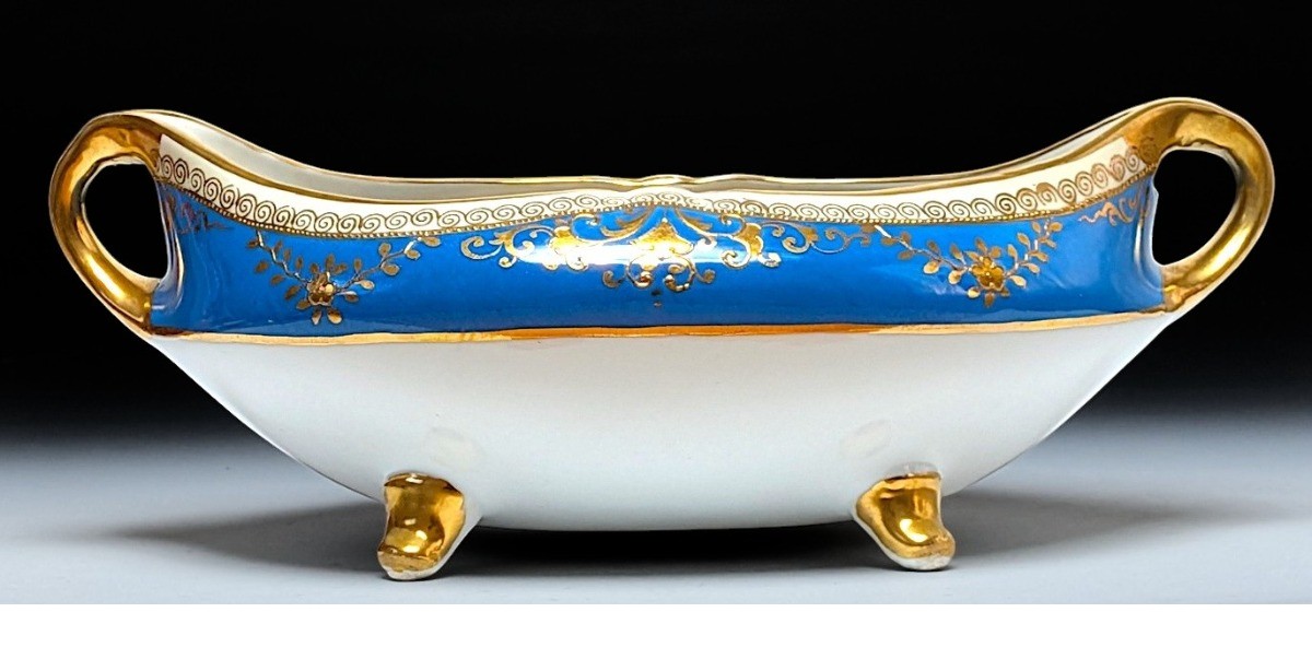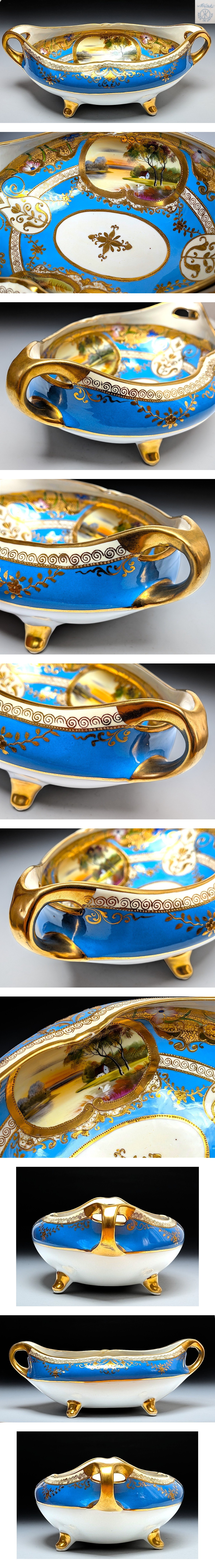 1906年~1925年頃 オールドノリタケ 金盛 ターコイズ 湖畔風景図 脚付きボウル | ||||