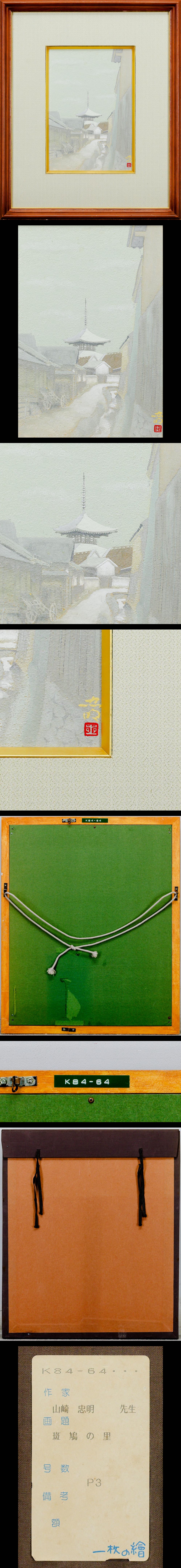 【真作】【WISH】山崎忠明「斑鳩の寺」日本画 3号 金落款 共シール 一枚の絵取扱 ◆冬の古都に立つ淡雪の塔 〇日展会友 #25102516 收藏