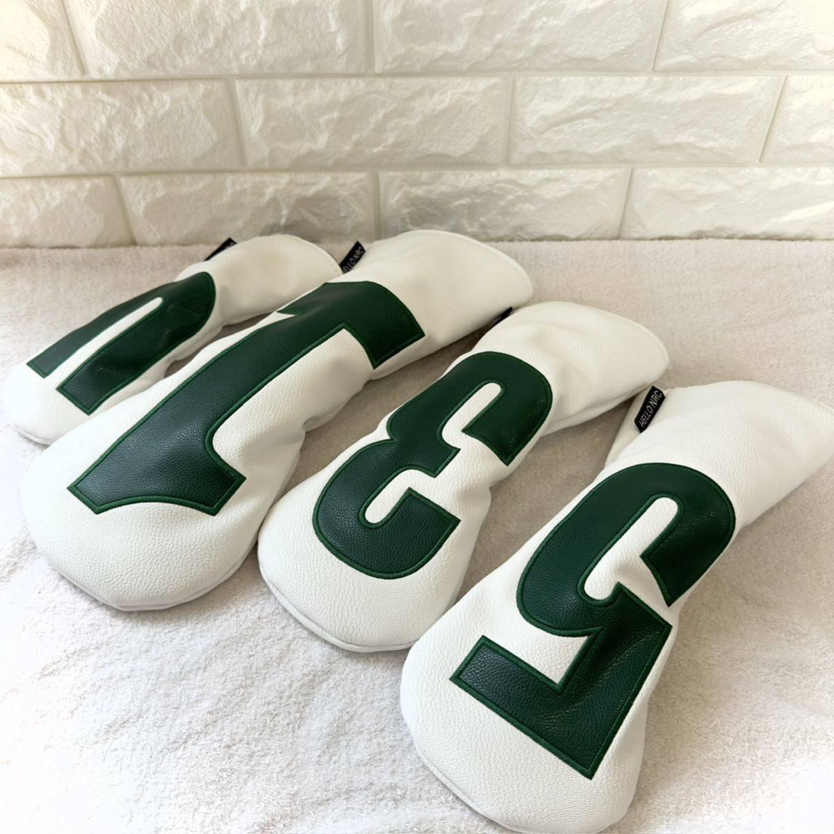 ゴルフヘッドカバー ドライバー フェアウェイ×2 ユーティリティ 白ロゴ 4点セット ウッド 收藏