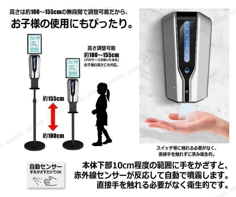 手をかざすだけ アルコール噴霧器 ADSP050A スタンドセット 電池式 オート噴霧 ディスペンサー UVA機能 赤外線センサー POPケース 收藏